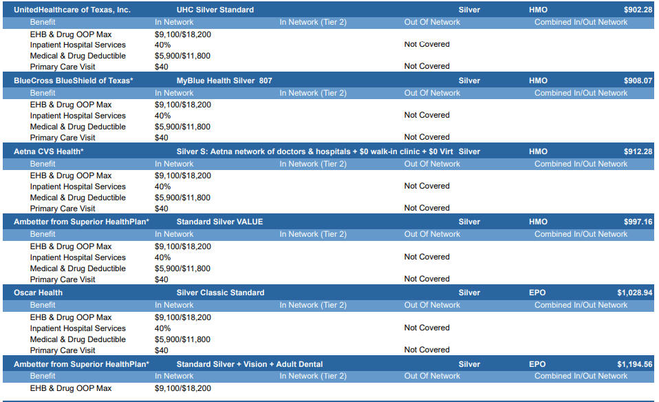 We run quote all day long and you'll be able to see your rates below. Scanning the big players in the Texas market (BCBS, Aetna, Ambetter, Oscar, United) at the silver level can quickly give you give a good feel on BCBS' pricing strength.